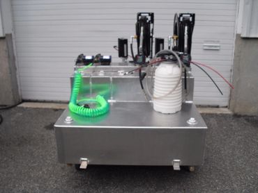 2 20 gal. FLUID TANKS, 1 WASHER FLUID TANK, 1 COOLANT TANK.  BOTH WITH PUMPS AND 40'COIL LINES AND NOZZLES